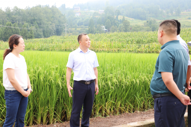 在胡家镇鸭池村水稻种植基地,陈军走进田间,详细询问今年水稻种植面积、亩产预估、机械化收割率及农户实际收益等情况。他指出,粮食安全是“国之大者”,必须牢牢抓在手上。要以现代农业园区建设为核心抓手,进一步盘活土地资源,加快推动农业经营模式向“新型经营主体引领、多元模式协同”转变。要充分推广土地托管、流转、自主经营等灵活模式,构建“农技指导+农机服务+仓储烘干”一体化服务网络;要全面普及“良种+良法+良机”配套技术,强化全周期技术跟踪服务,大力培育种粮大户、家庭农场等新型经营主体,切实调动农户种粮积极性,不断提升土地产出效益。