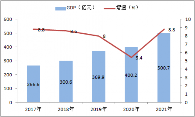 图1:2017年-2021年GDP和增长速度