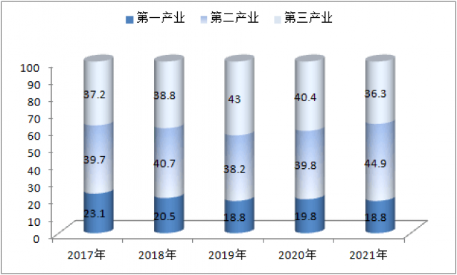 图2:2017年-2021年三次产业增加值占GDP的比重