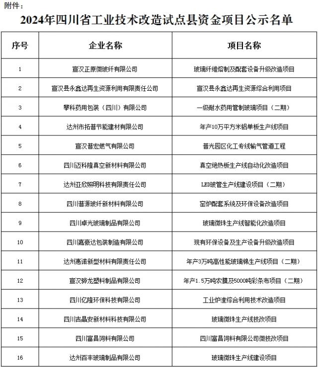 附件:2024年四川省工业技术改造试点县资金项目公示名单