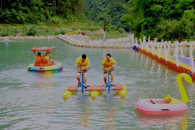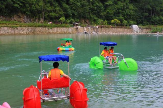 景区还新添加了水上游乐项目、其中包括:龙头滑梯、充气支架水池、水上浮桥、水上滚筒、水上溜波球水上浮船、透明船、水上手摇船、水上自行车、水上三轮车、电动激光碰碰船、动物碰碰船等。
