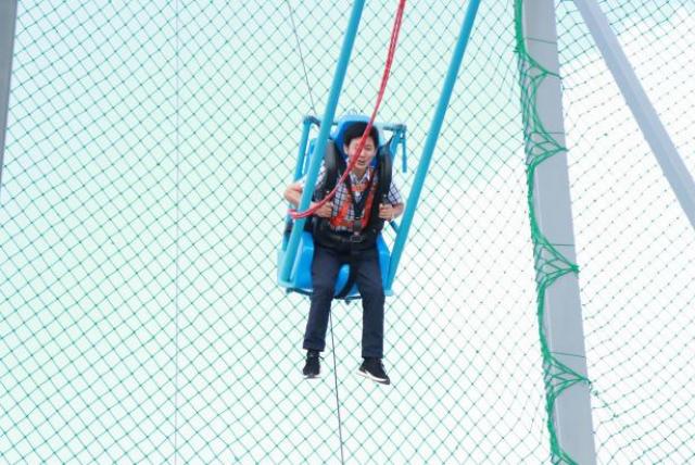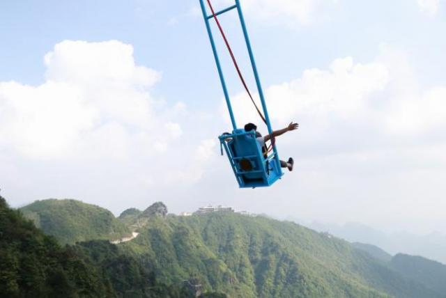悬崖秋千,位于海拔2100米的山崖边缘罗盘云顶巴盐驿站旁,秋千的高度近20米,属于极限刺激运动。秋千的座椅,被电吸铁拉到悬崖与地面它与地面呈现出60以上夹角,吸铁忽然松开,长长的秋千瞬间向悬崖外荡去,带给人以刺激感觉。年龄大者或体重超标者,上秋千前还要现场测血压脉搏,有心血管疾病的游客禁止乘坐。其安全保障由专业的设计和技术精湛的施工团队来保障,游客可放心体验!