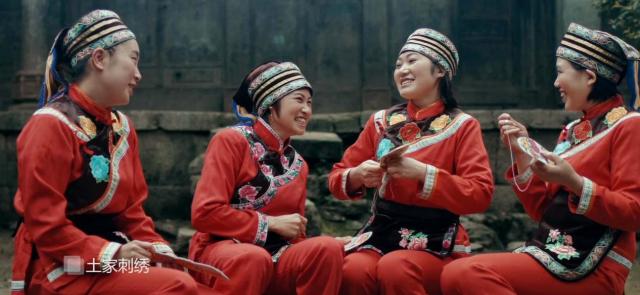 土家人能歌善舞,热爱生活,对美好生活的向往,都要以刺绣的方式体现在服饰、鞋、帽上。土家刺绣蕴含着土家族人深刻的礼仪制度、交往礼俗、及民族愿景,在古代,土家人的布料色泽较为单一,主要是白色、蓝色、青色(黑色)等为主,土家女儿用五彩色线绣上鲜艳、精美的图案,世世代代心手相传,刺绣多以单层绣与多层绣相结合,一般先选择白、蓝、黑等单色做底,底布根据需要裁剪,再配上图案纹样,图案纹样多以色泽鲜艳生动、对比强烈、寓意吉祥为主。