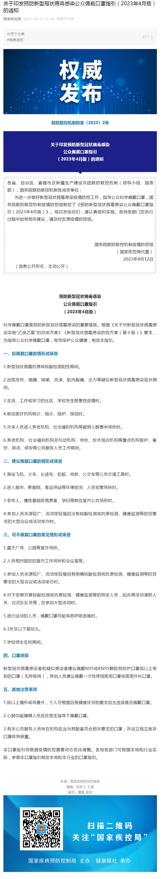 关于印发预防新型冠状病毒感染公众佩戴口罩指引