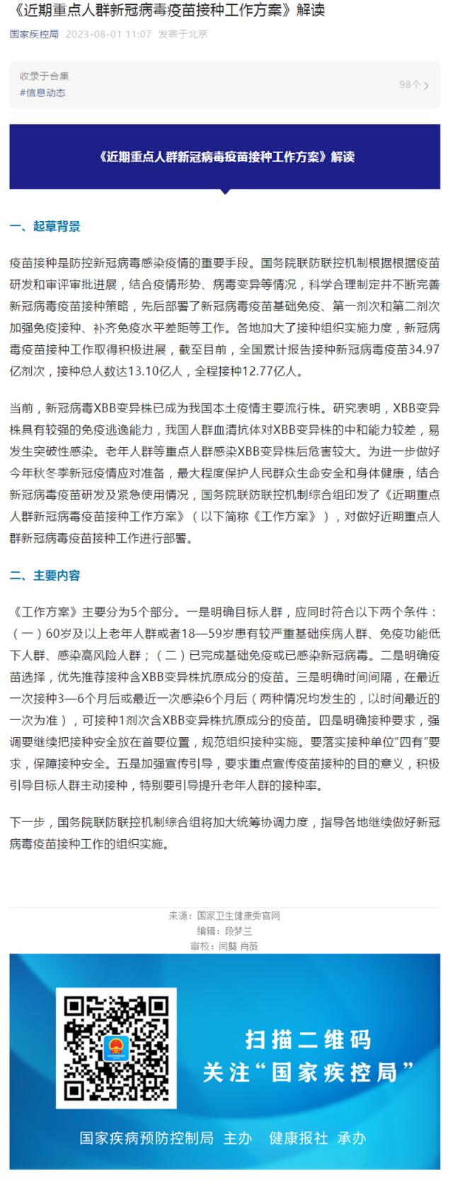 《近期重点人群新冠病毒疫苗接种工作方案》解读