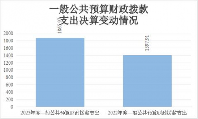 2023年度一般公共预算财政拨款支出1865.97万元,占本年支出合计的100%。与2022年度相比,一般公共预算财政拨款支出增加468.06万元,上升33.48%。主要变动原因是人员增加8人,社会保障和就业支出增加,农林水支出增加。