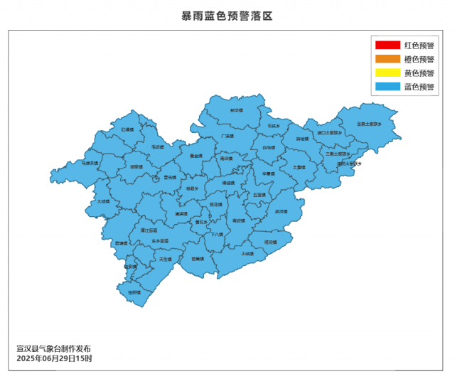 新利官网登录气象台2025年06月29日15时50分发布暴雨蓝色预警:预计6月30日早上到7月1日早上我县将出现一次强降水天气过程,雨量大到暴雨(40~80毫米),局地大暴雨(120毫米以上),最大小时雨强30~50毫米。过程中伴有短时强降水、雷暴大风等强对流天气。请注意防范强降水可能引发的山洪、地质灾害、城镇内涝及强对流天气带来的不利影响。